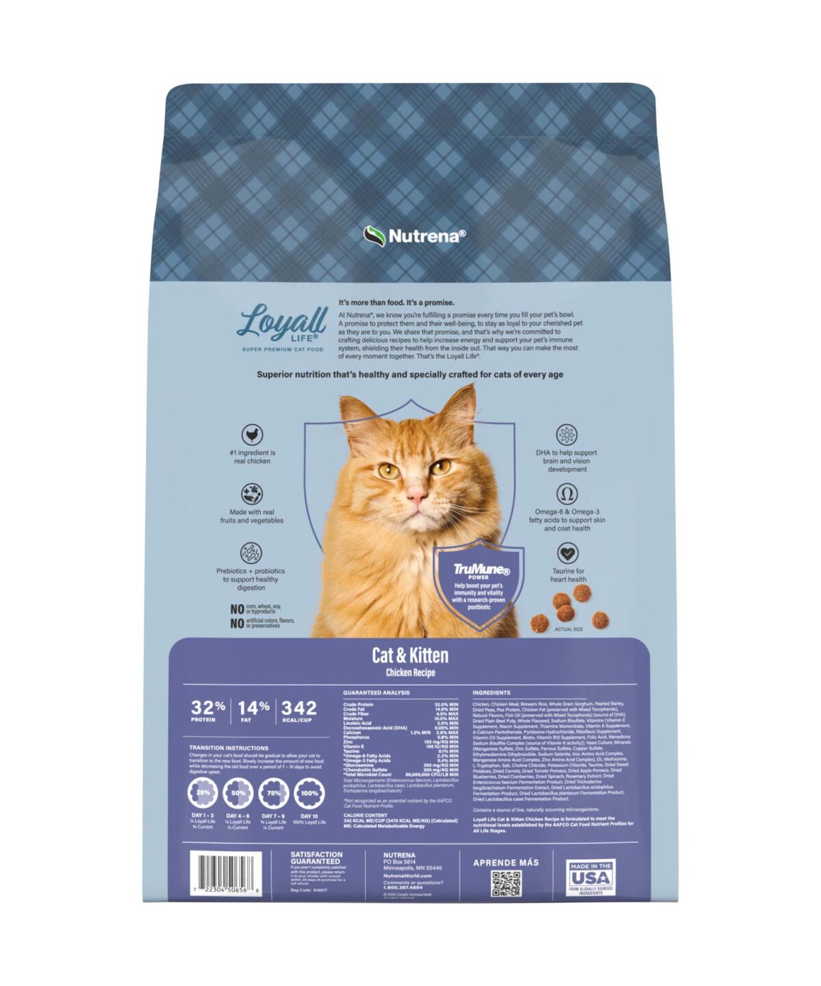 Loyall Life® Cat & Kitten Chicken Recipe is expertly crafted to provide wholesome nutrition for cats of all ages. Real chicken is the #1 ingredient, and this recipe is always free of byproducts, corn, wheat, and soy. It includes taurine for heart health and DHA for vision development along with guaranteed levels of Omega-6 and Omega-3 fatty acids to support healthy skin and coat. With our TruMune® Power supporting immunity and vitality, you can provide high-quality, premium cat food for your loyal friend across all life stages.